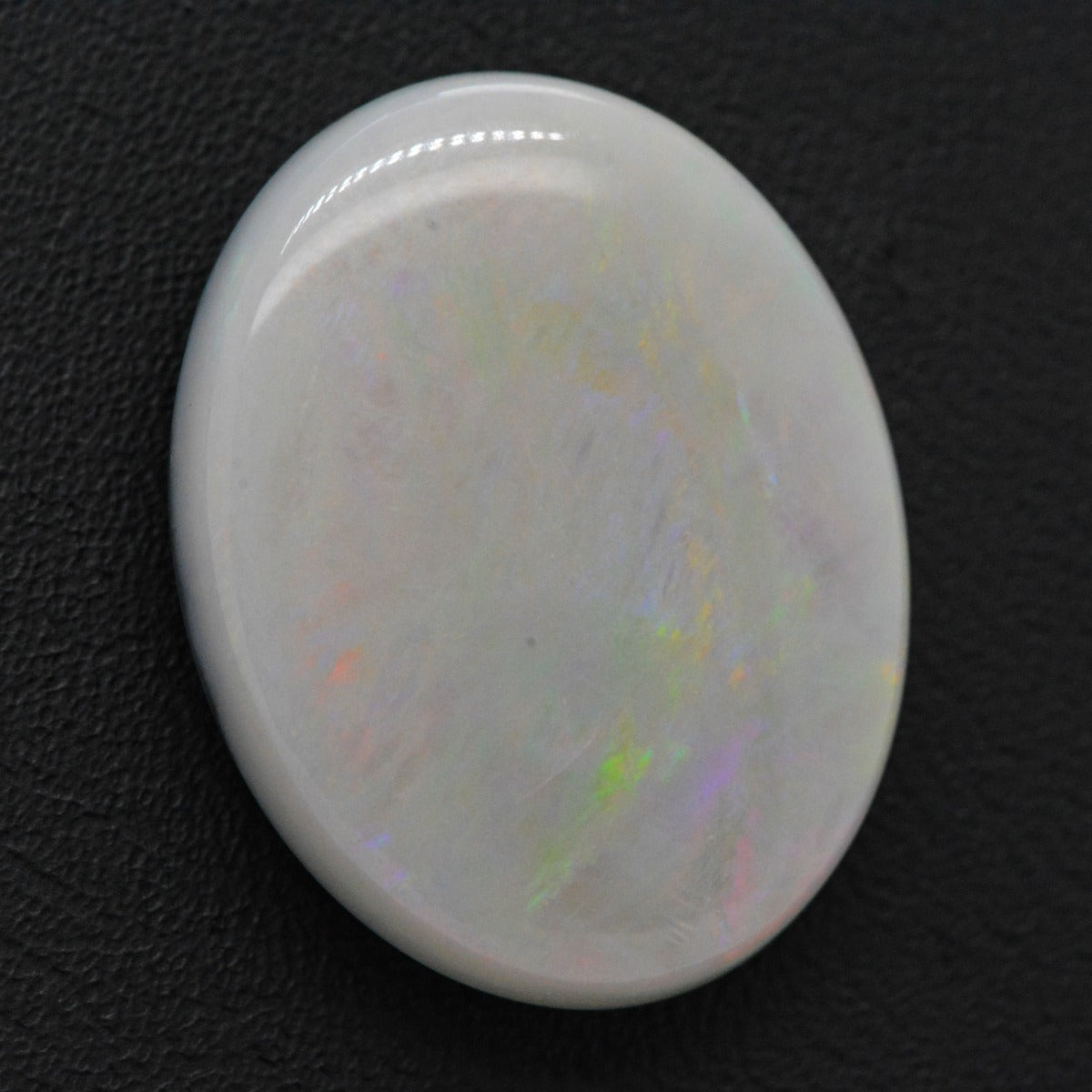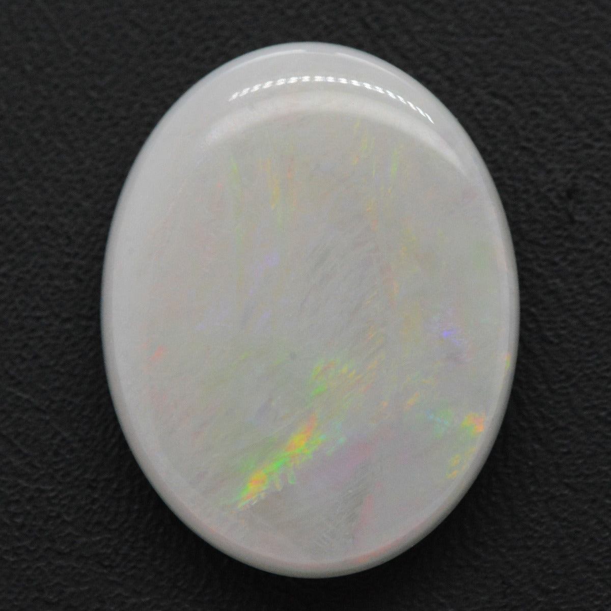 Measuring in at 16mm(w) x 21mm(h), This Opal Displays mild flashes of Green, Yellow and Red with a Opaque Grey Background.