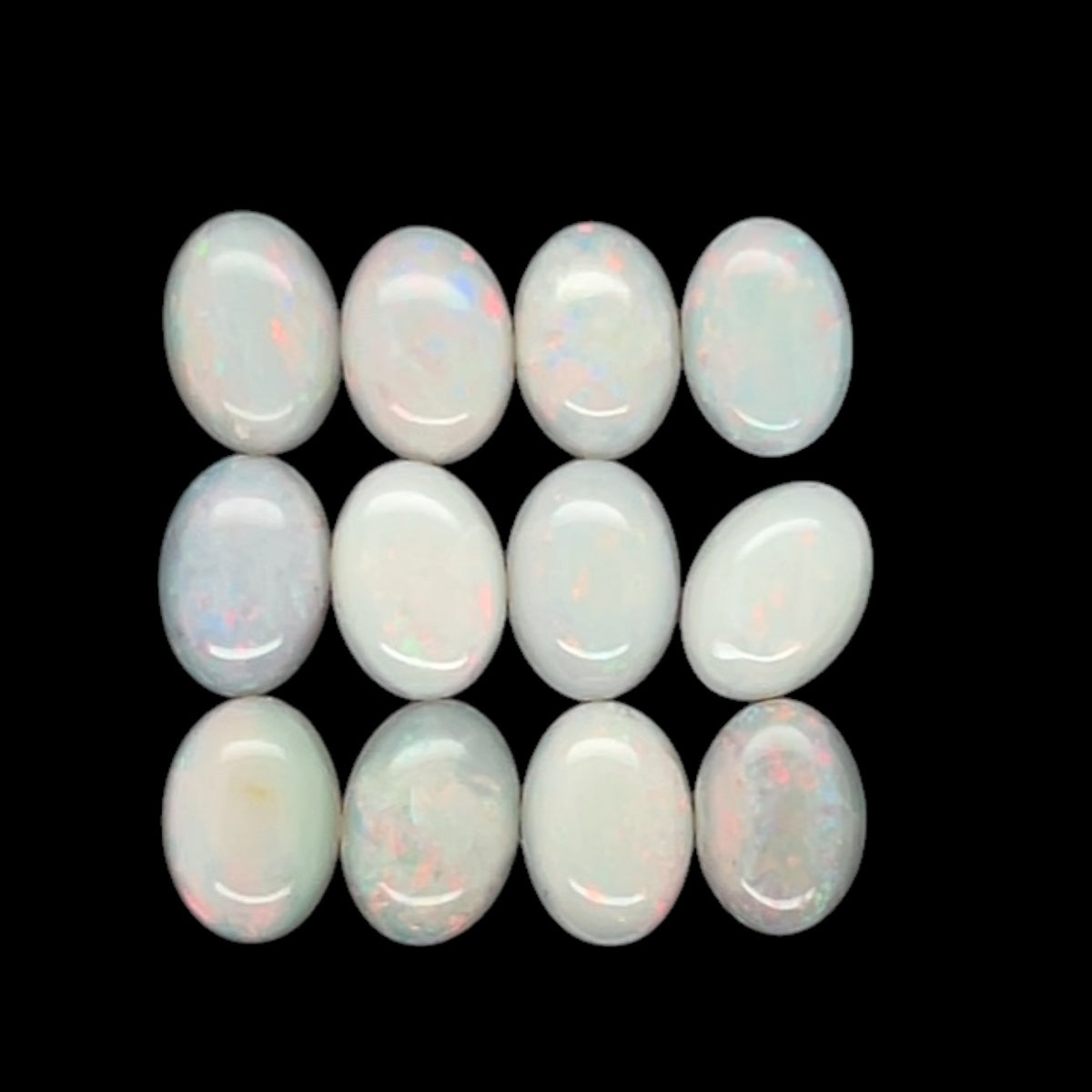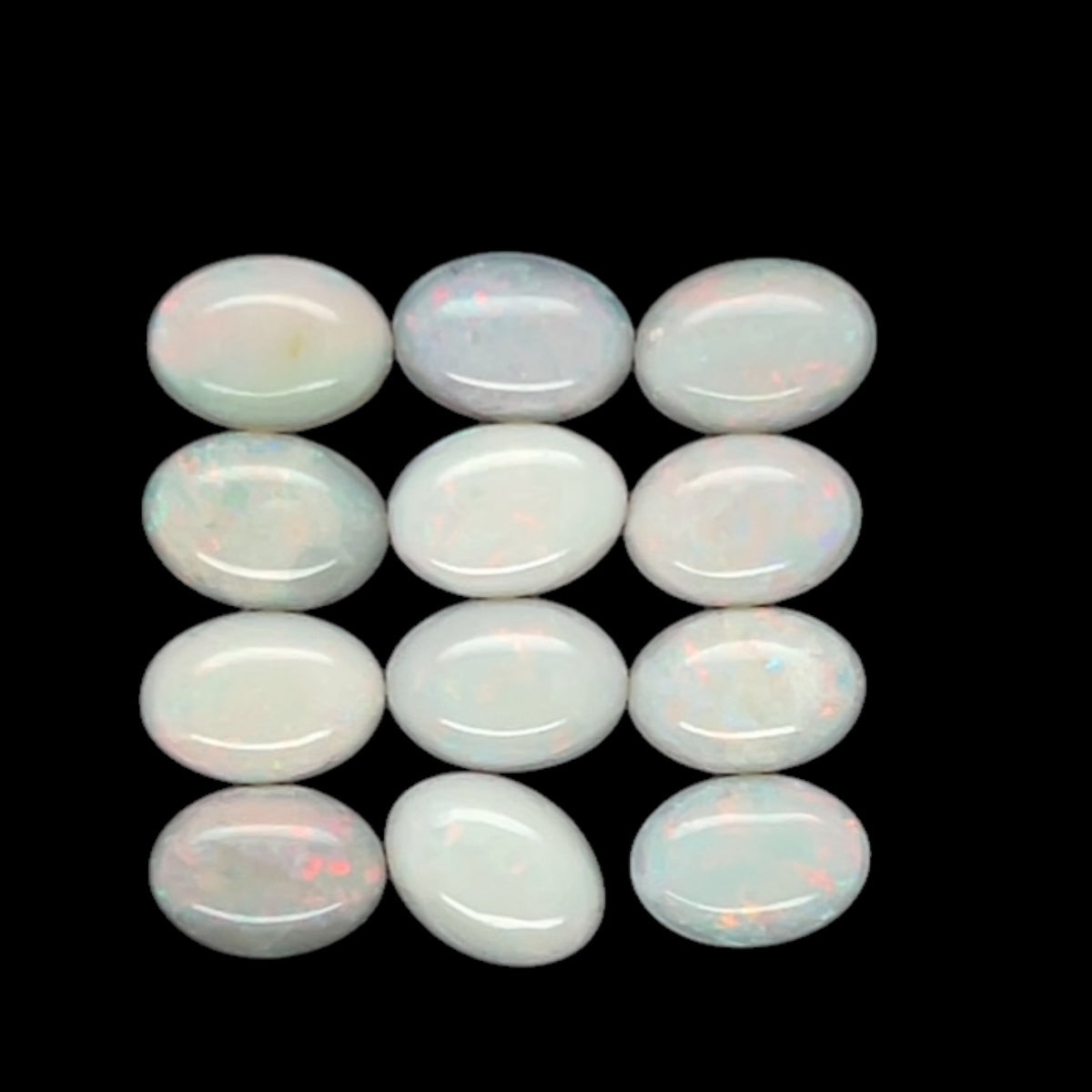Unit price perThis set of 12 oval crystal opals weigh a total of 6.86ct and are approximately 5mm(w) x 7mm(h) .