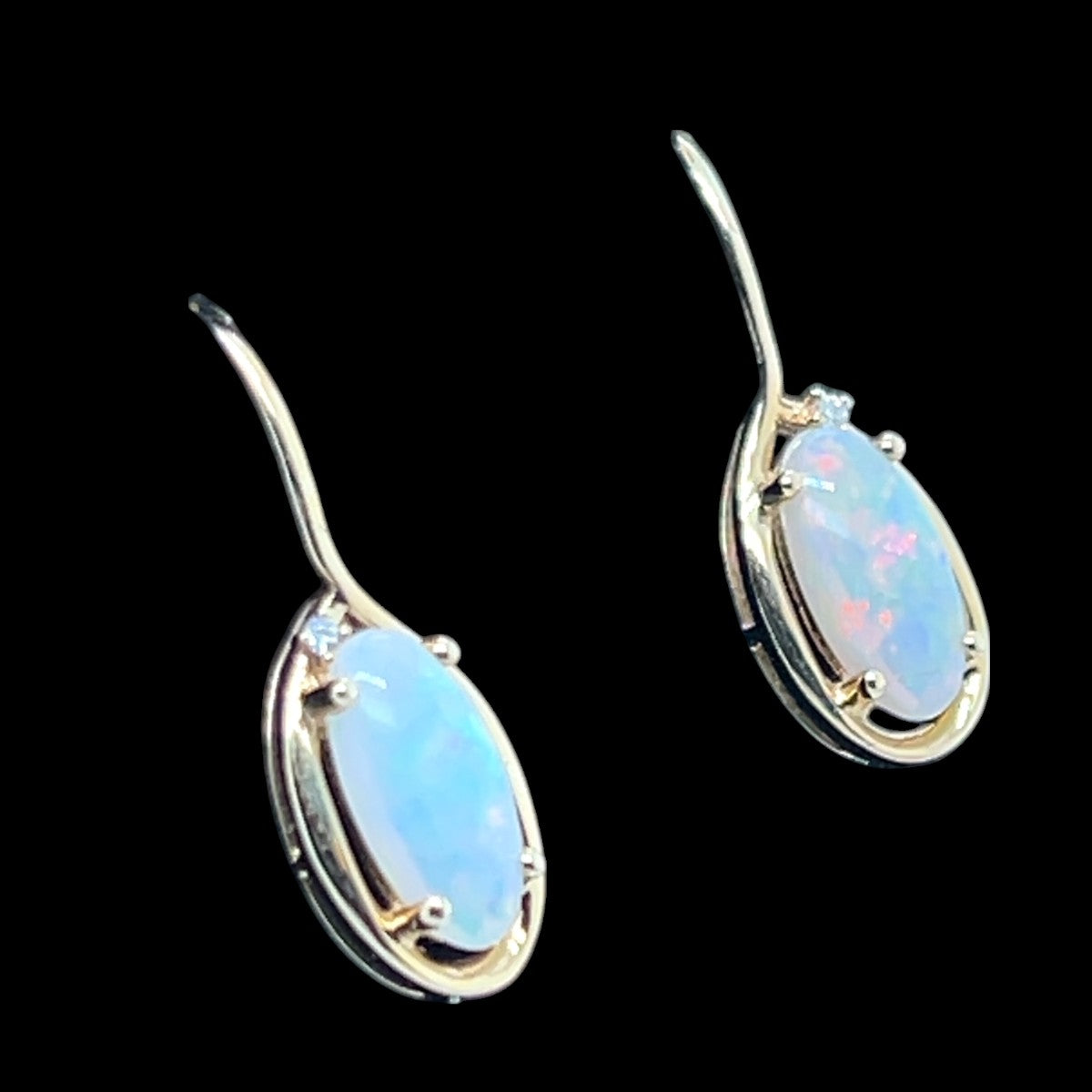 Unit price per14ct yellow gold solid opal earrings with a single diamond and have shepherd hook backings