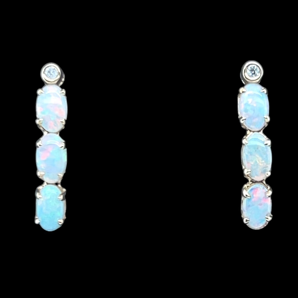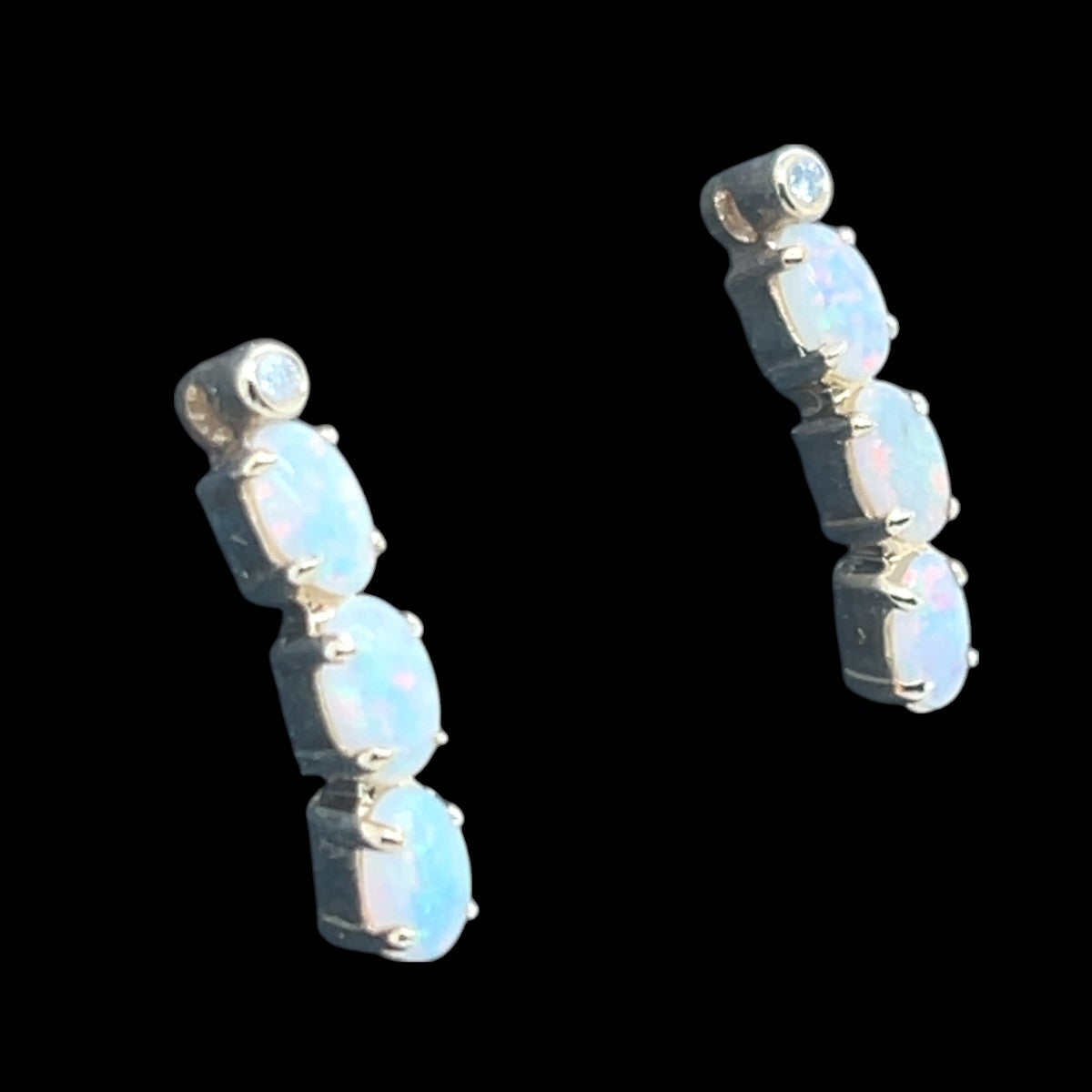 Unit price per14ct yellow gold solid opal earrings with a single diamond