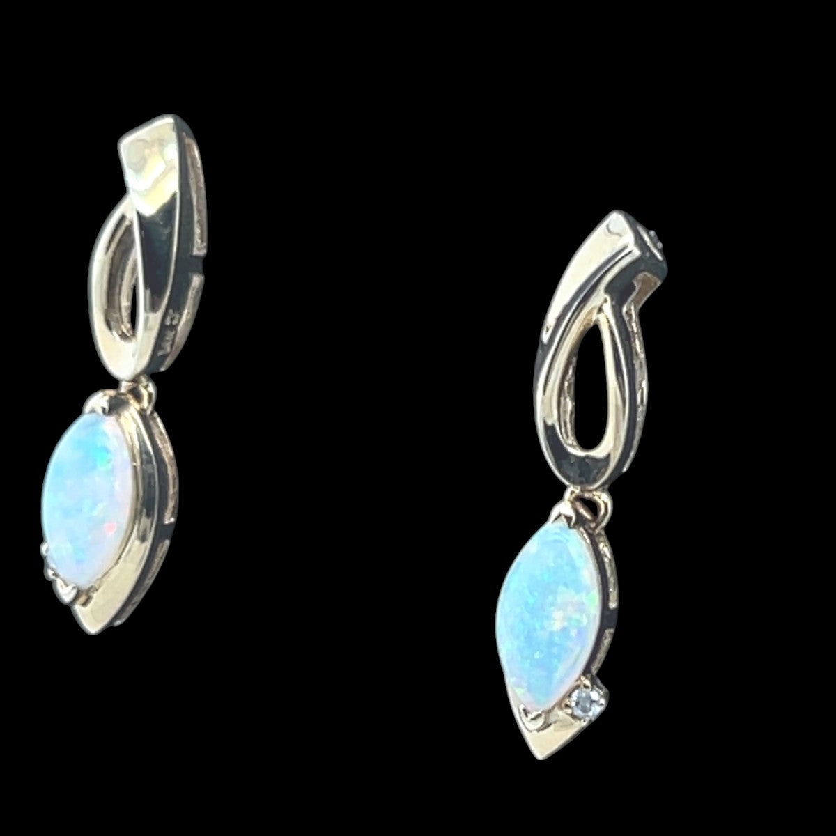 Unit price per14ct yellow gold solid opal earrings with a single diamond