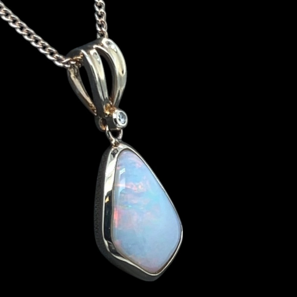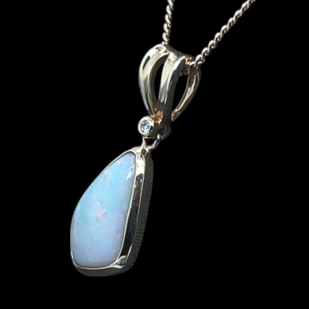 Unit price per14ct yellow gold opal pendant with a single brilliant cut diamond