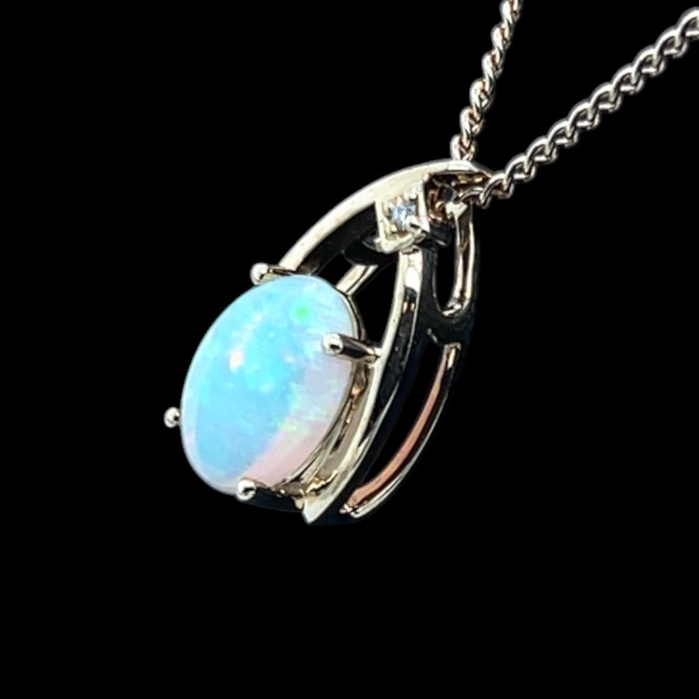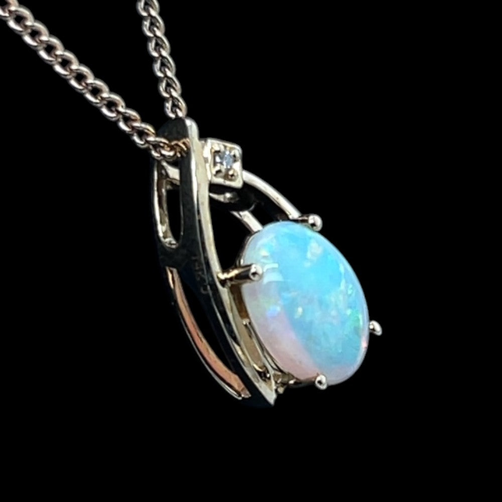 Unit price per14ct yellow gold opal pendant with a single brilliant cut diamond