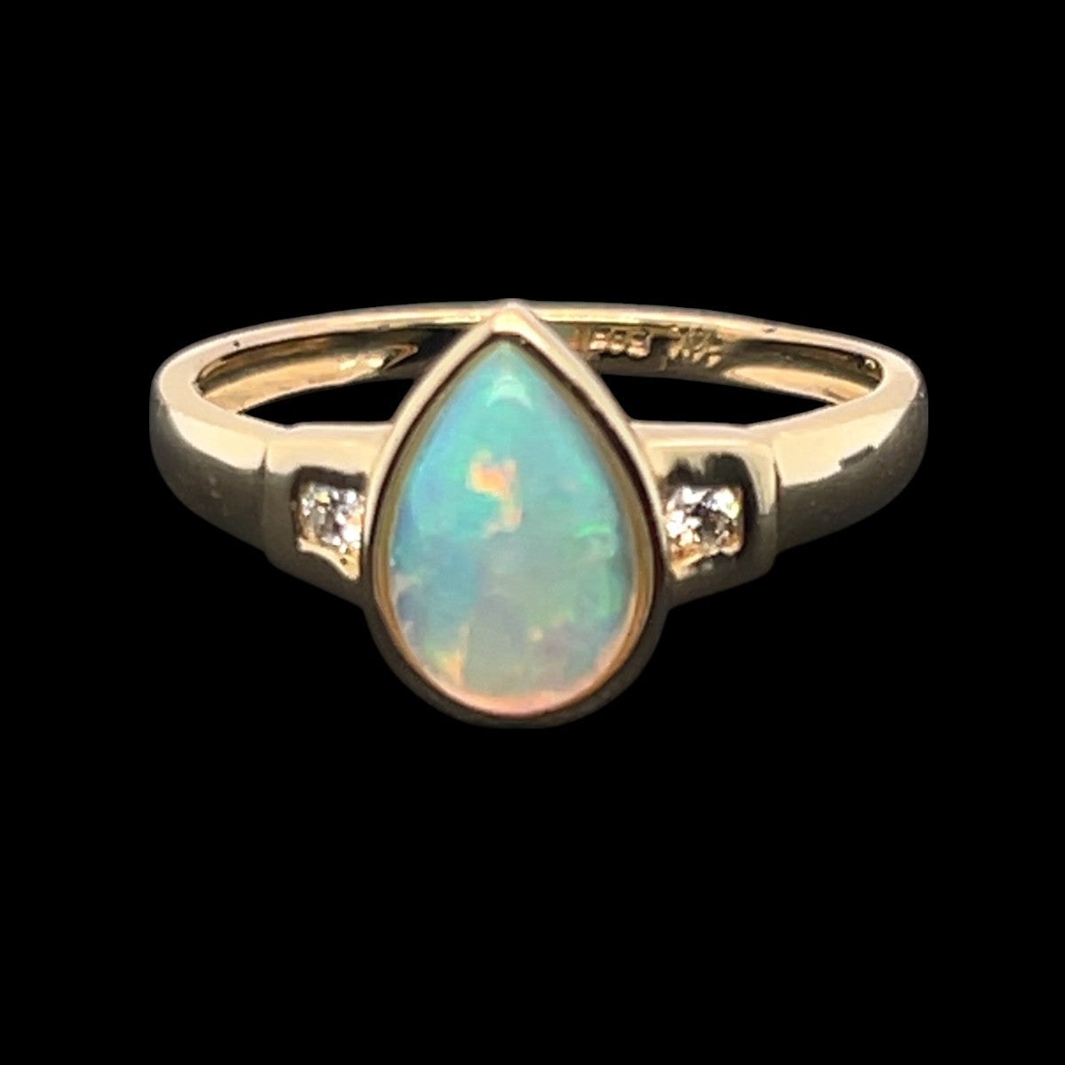 Unit price per14ct Yellow Gold Solid Opal Ring Set with 2 Brilliant Cut Diamonds