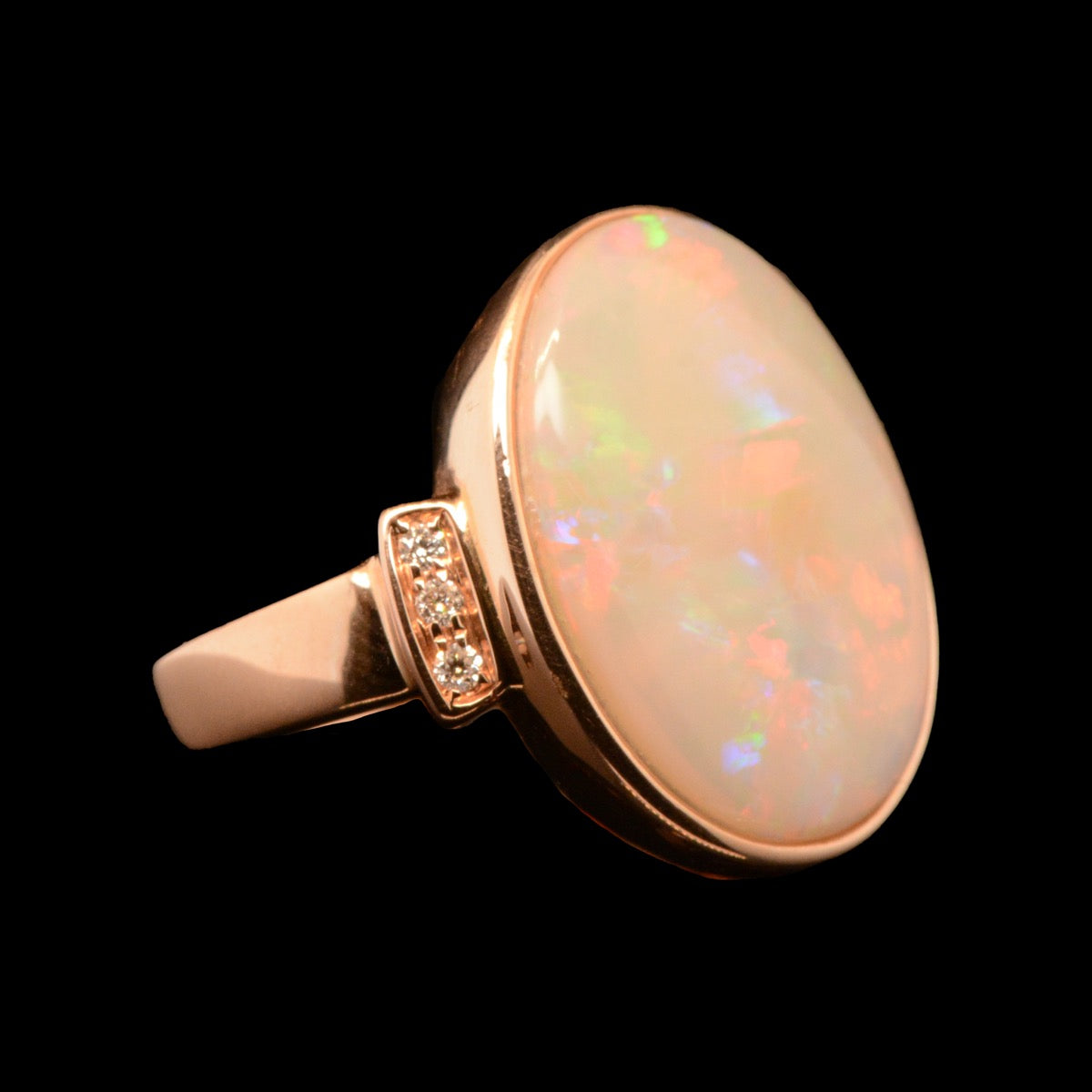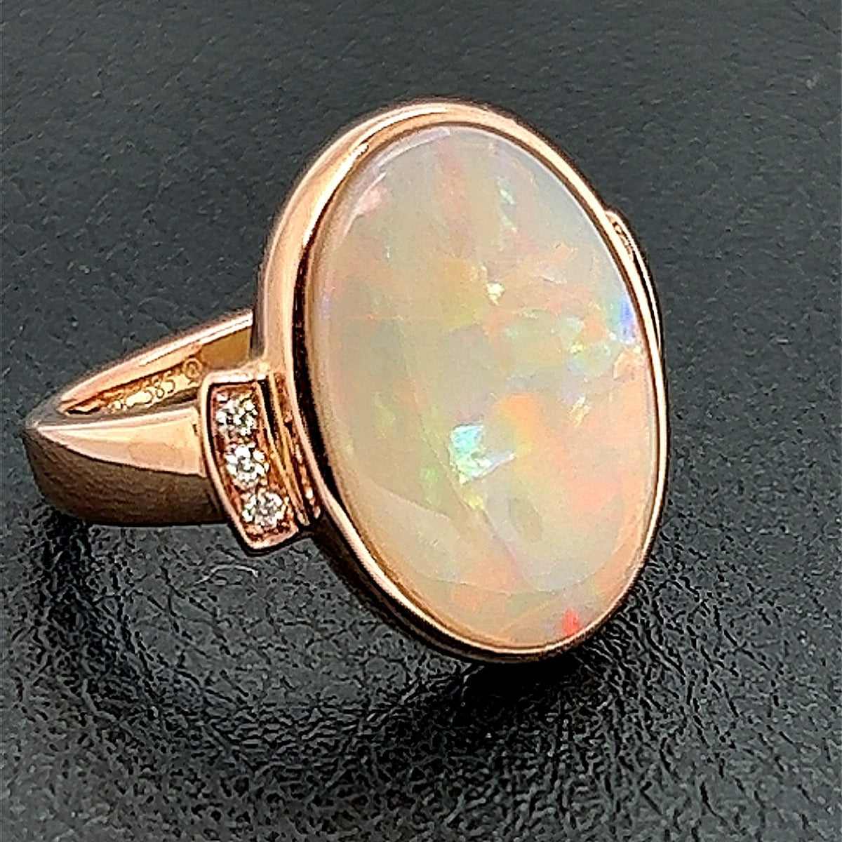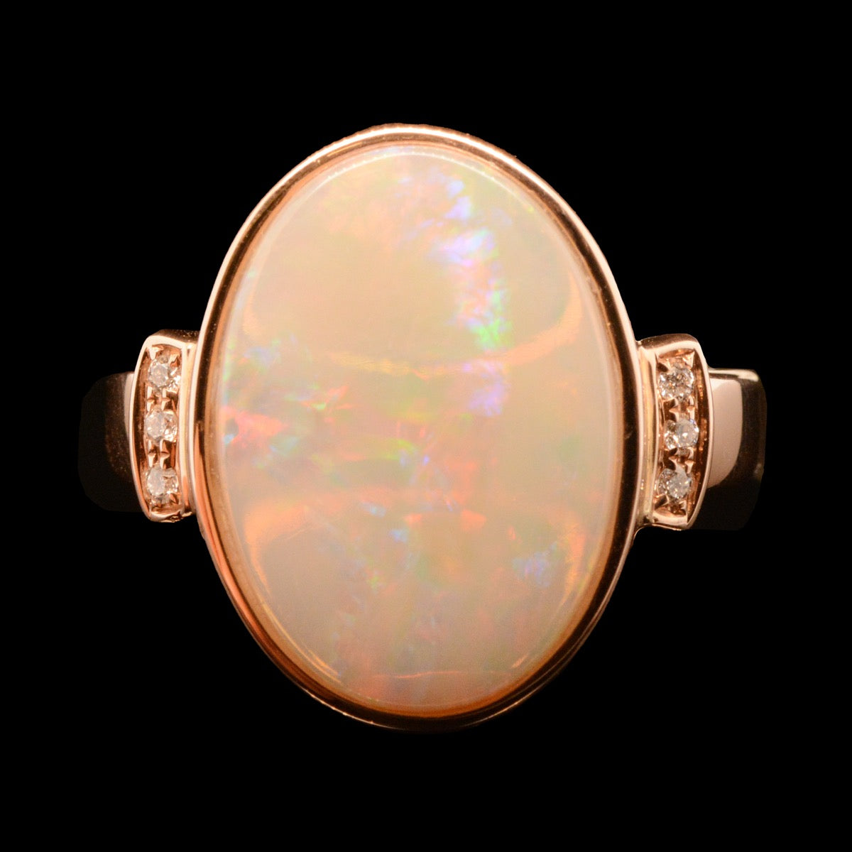Unit price per14ct Rose gold Solid opal ladies ring set with 6 brilliant cut diamonds