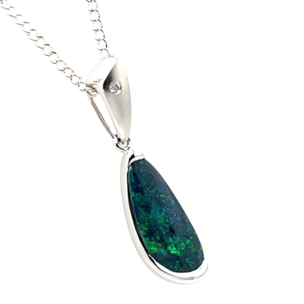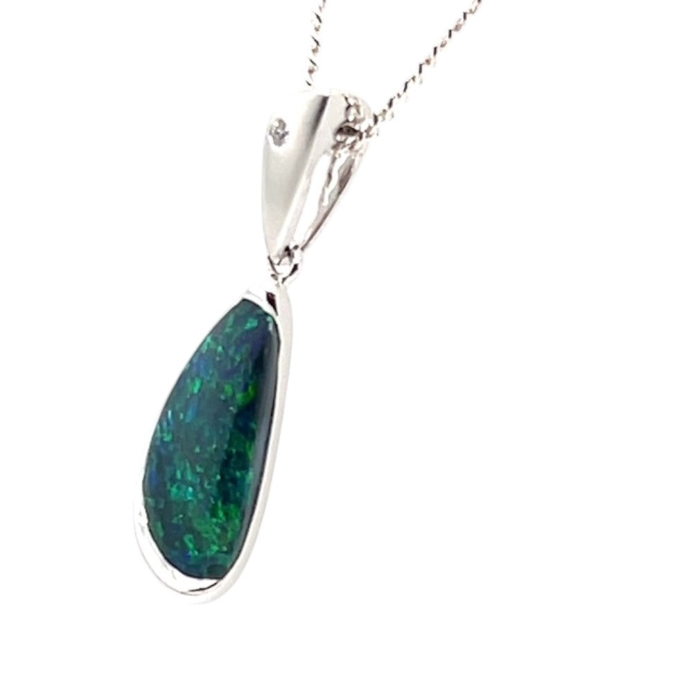 Unit price per14ct white gold pendant with a black opal and a brilliant cut diamond