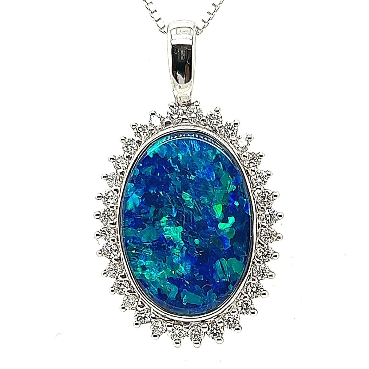 Unit price per14ct White Gold Doublet Opal Pendant set with 0.80ct of brilliant cut diamonds