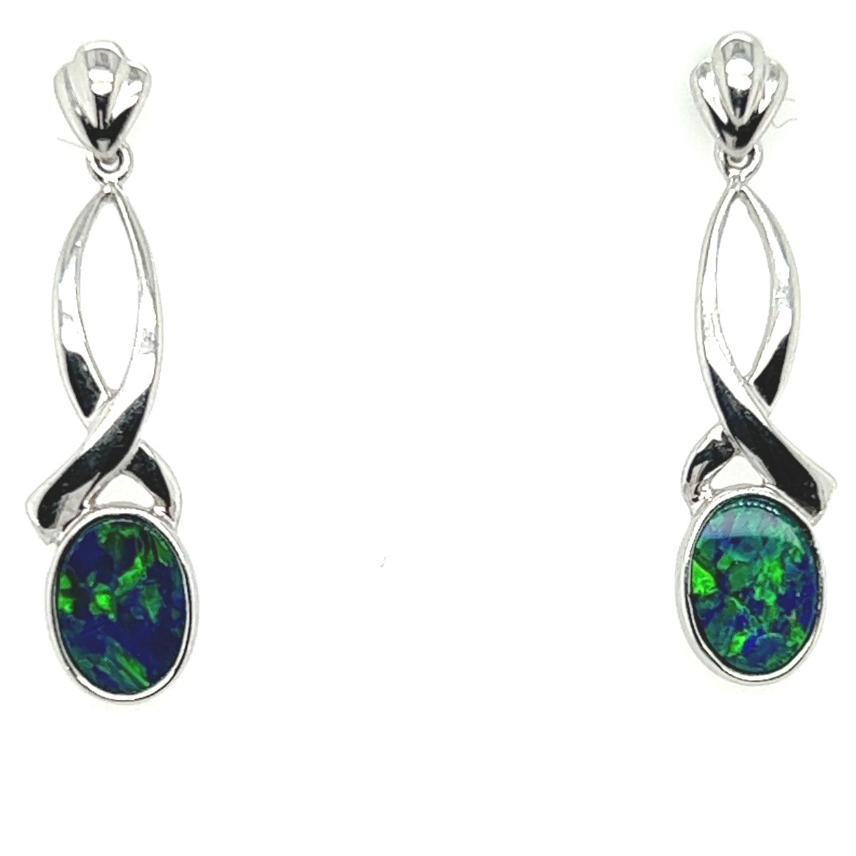 14ct White Gold Drop Doublet Opal Earrings (de44)