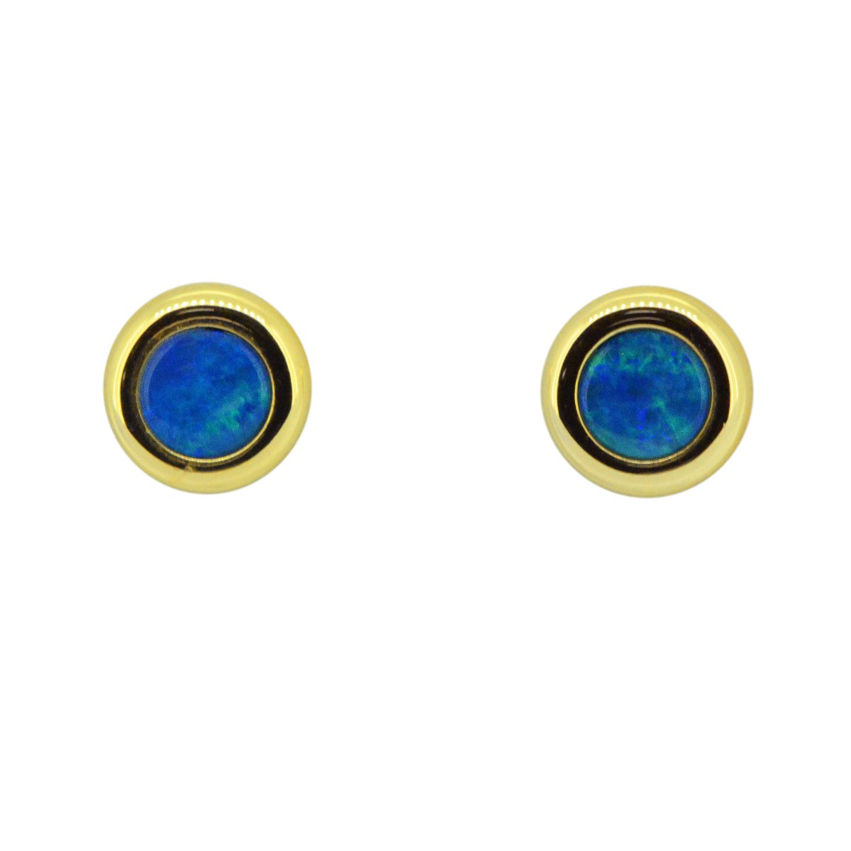 14ct Yellow Gold Circle Doublet Opal Earrings