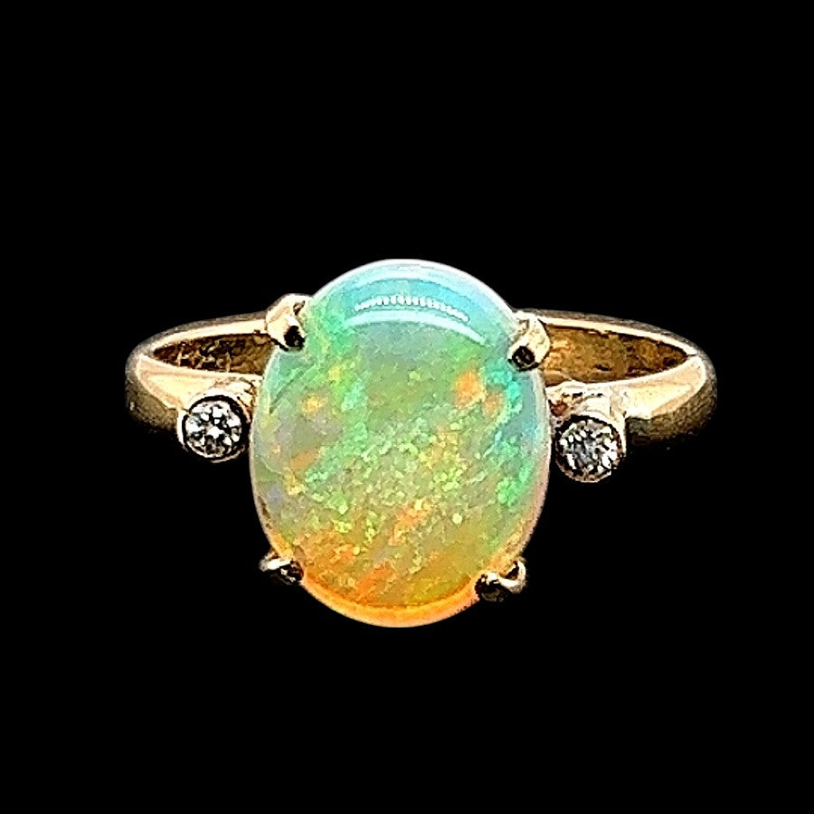 Unit price per14ct yellow gold solid opal ring with two brilliant cut diamonds