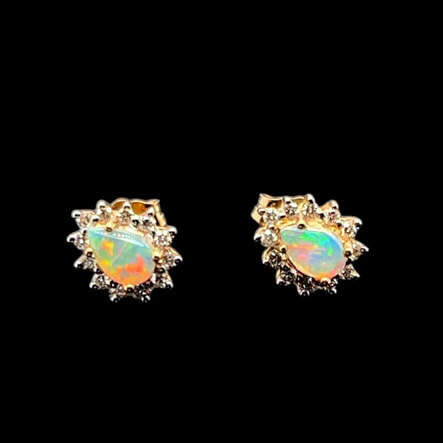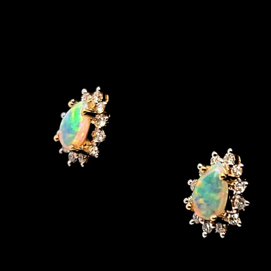 Unit price per18ct yellow gold solid opal earrings surrounded by 12 diamonds
