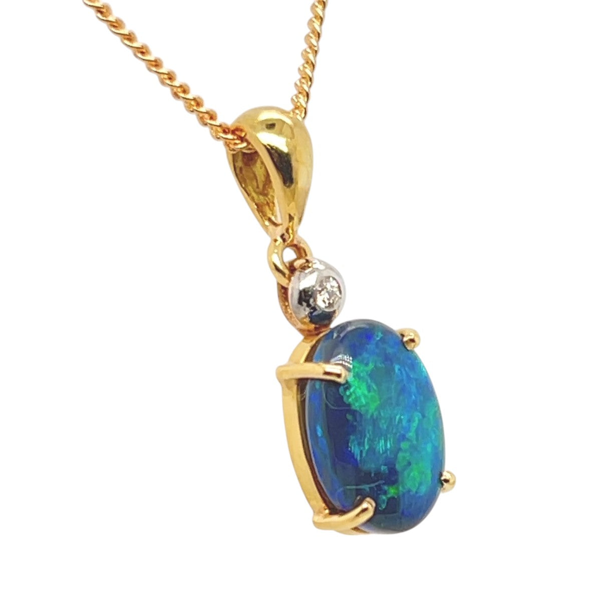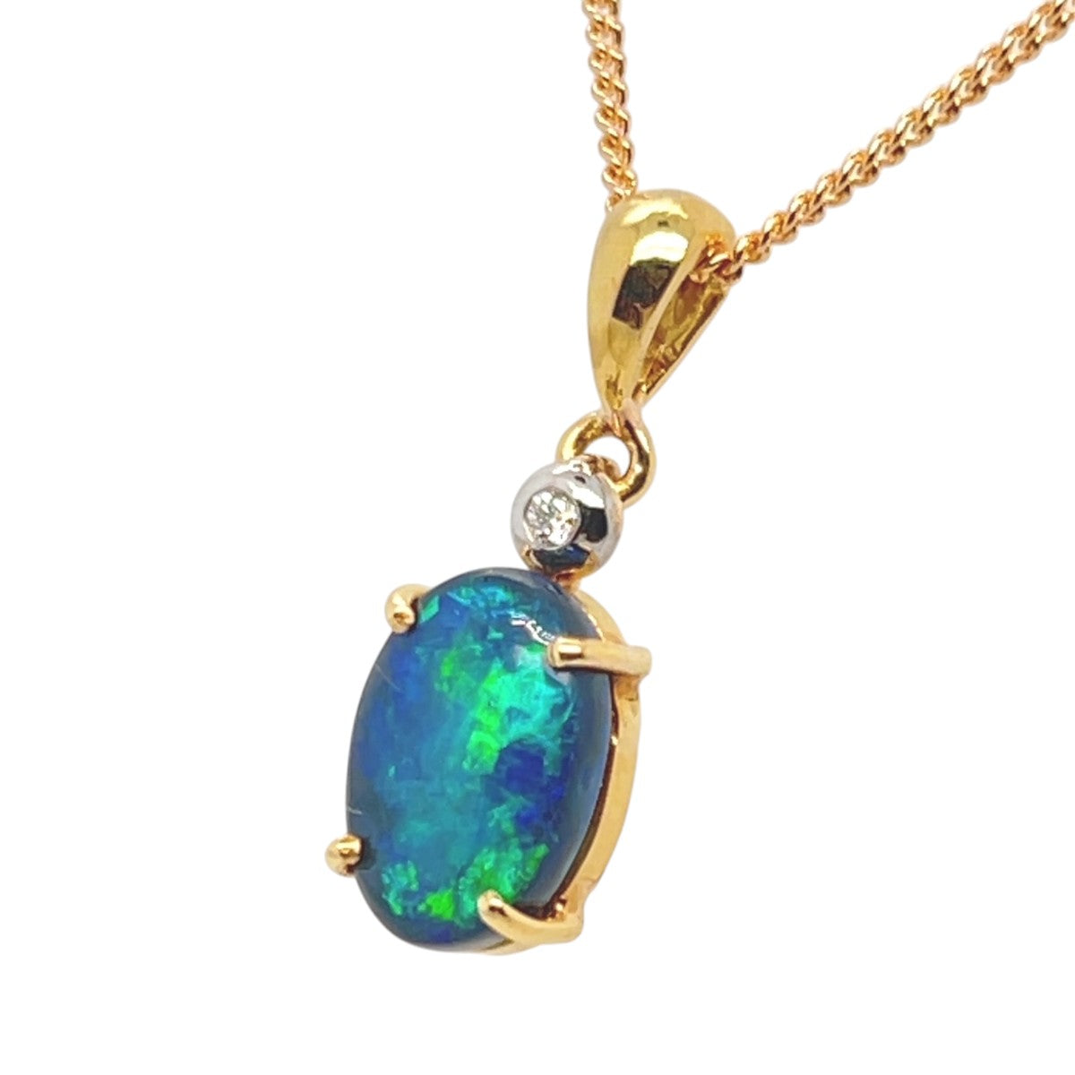 Unit price per18ct gold black opal pendant set with a brilliant cut diamond