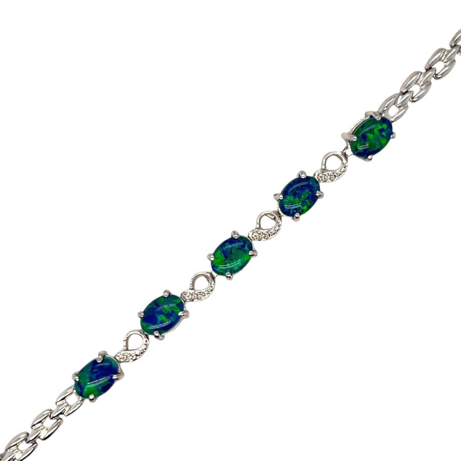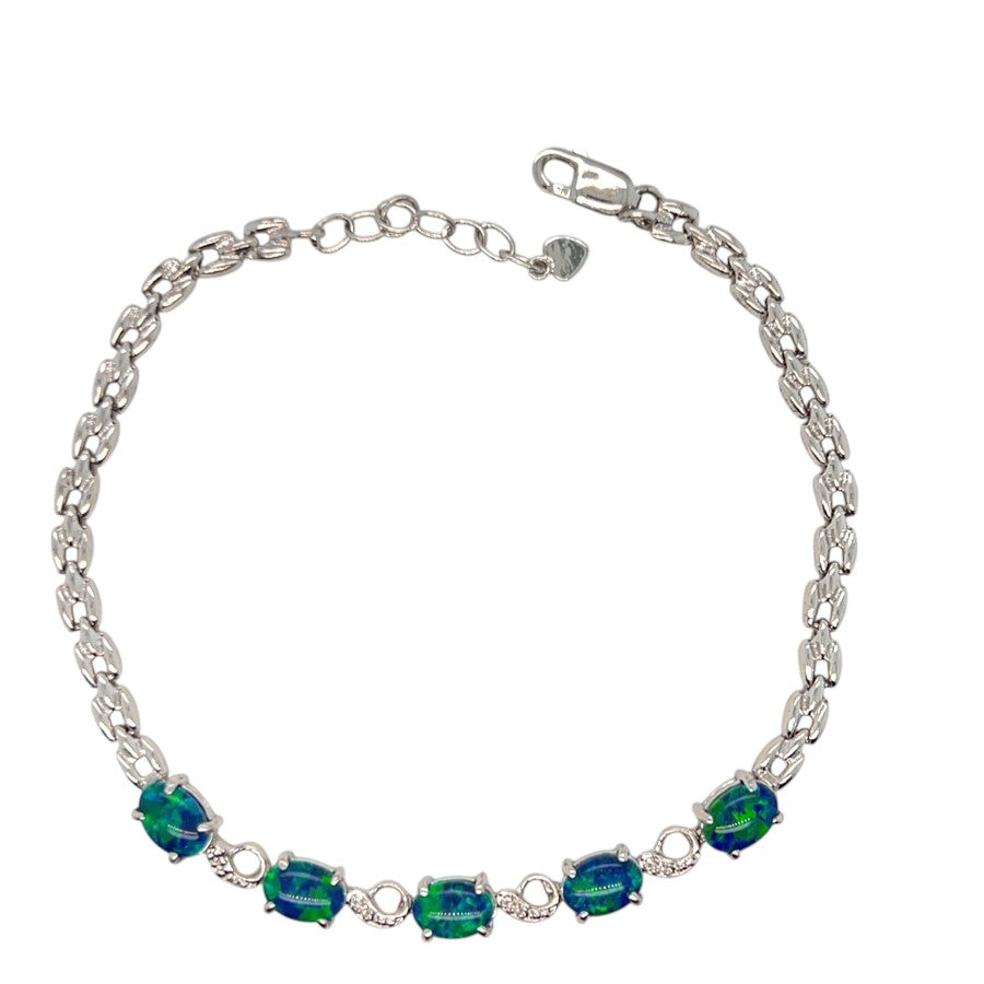 Unit price perSet in Sterling Silver, This Bracelet is Fitted with 5 Oval Triplet Opals with green and Blue Background.