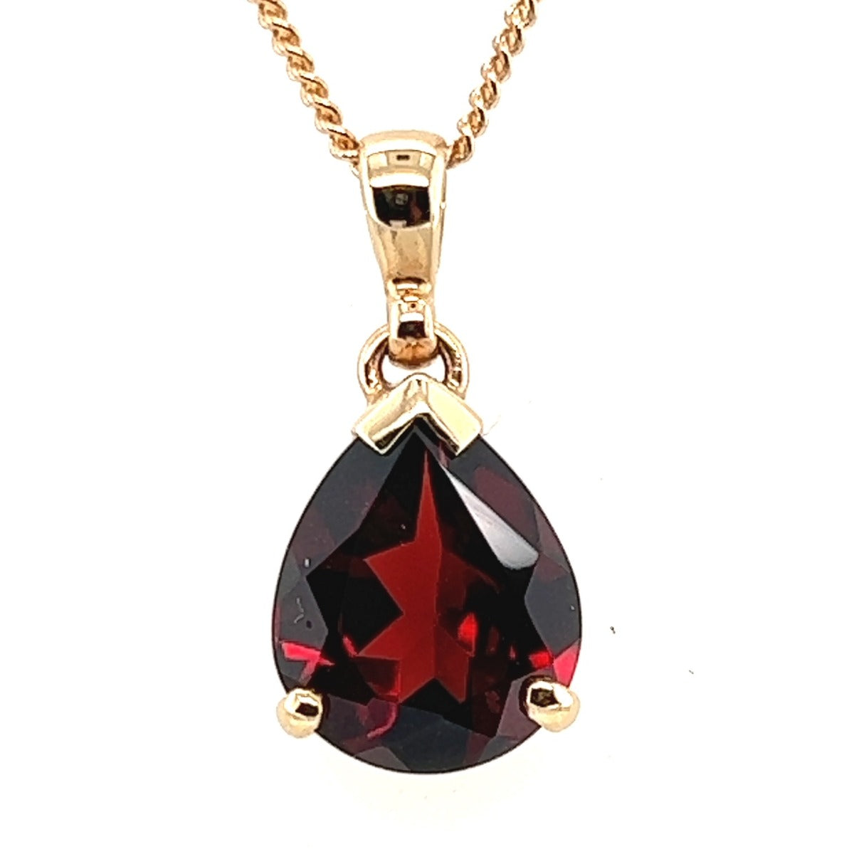 9ct yellow gold tear drop garnet claw set pendant