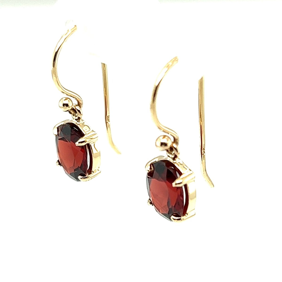 9ct yellow gold garnet drop earrings set with a sheppards hook fitting