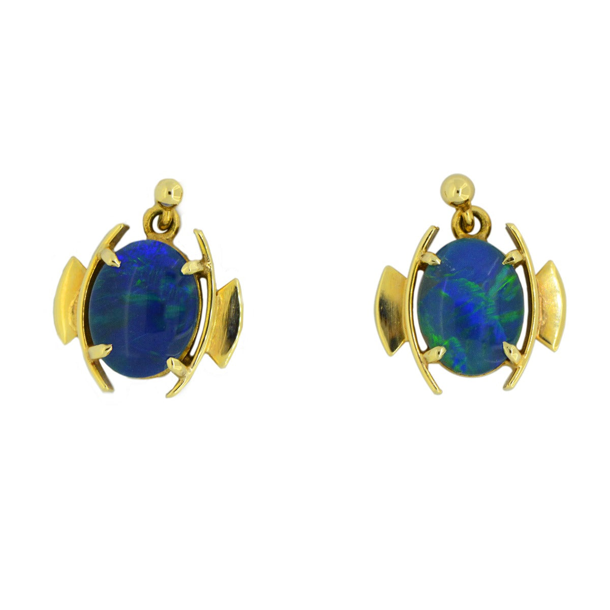 Unit price perAntique Style New 14ct Yellow Gold, Australian Triplet Opal Earrings, Oval Dimentions 7mm(w) x 9mm(h).