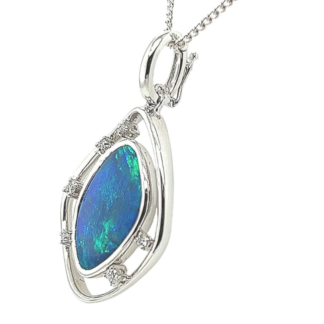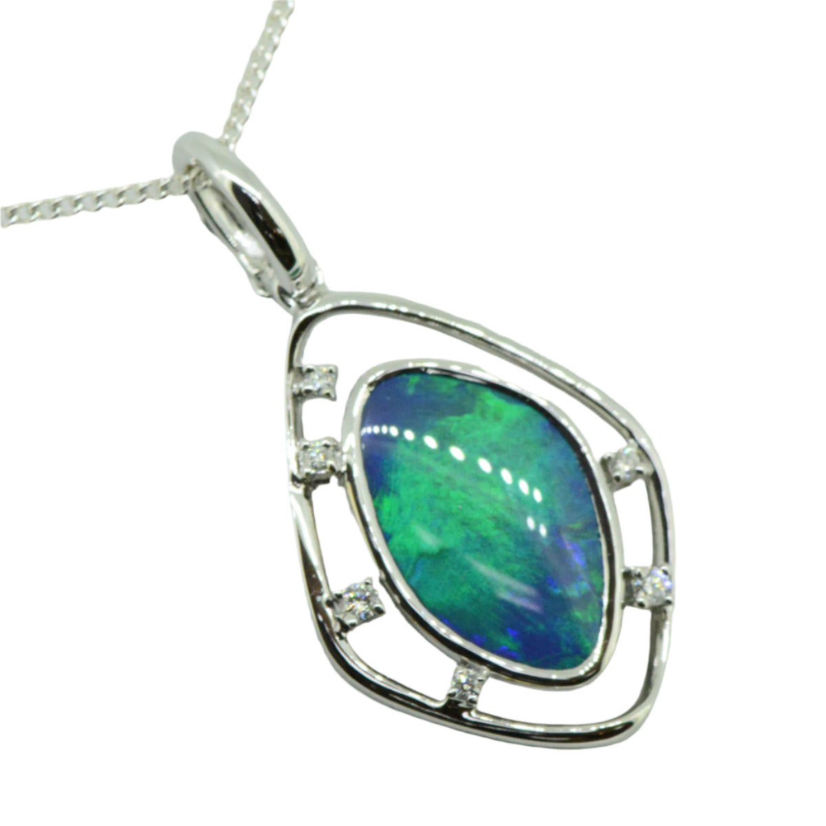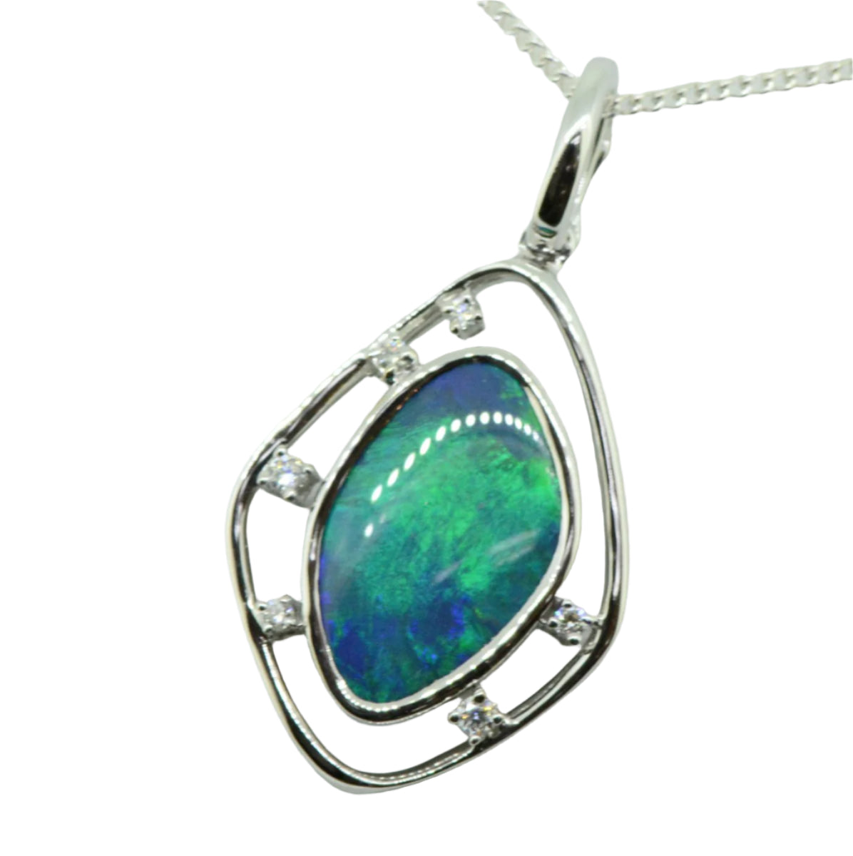 Unit price per18ct White gold solid black opal pendant set with 5 brilliant cut diamonds