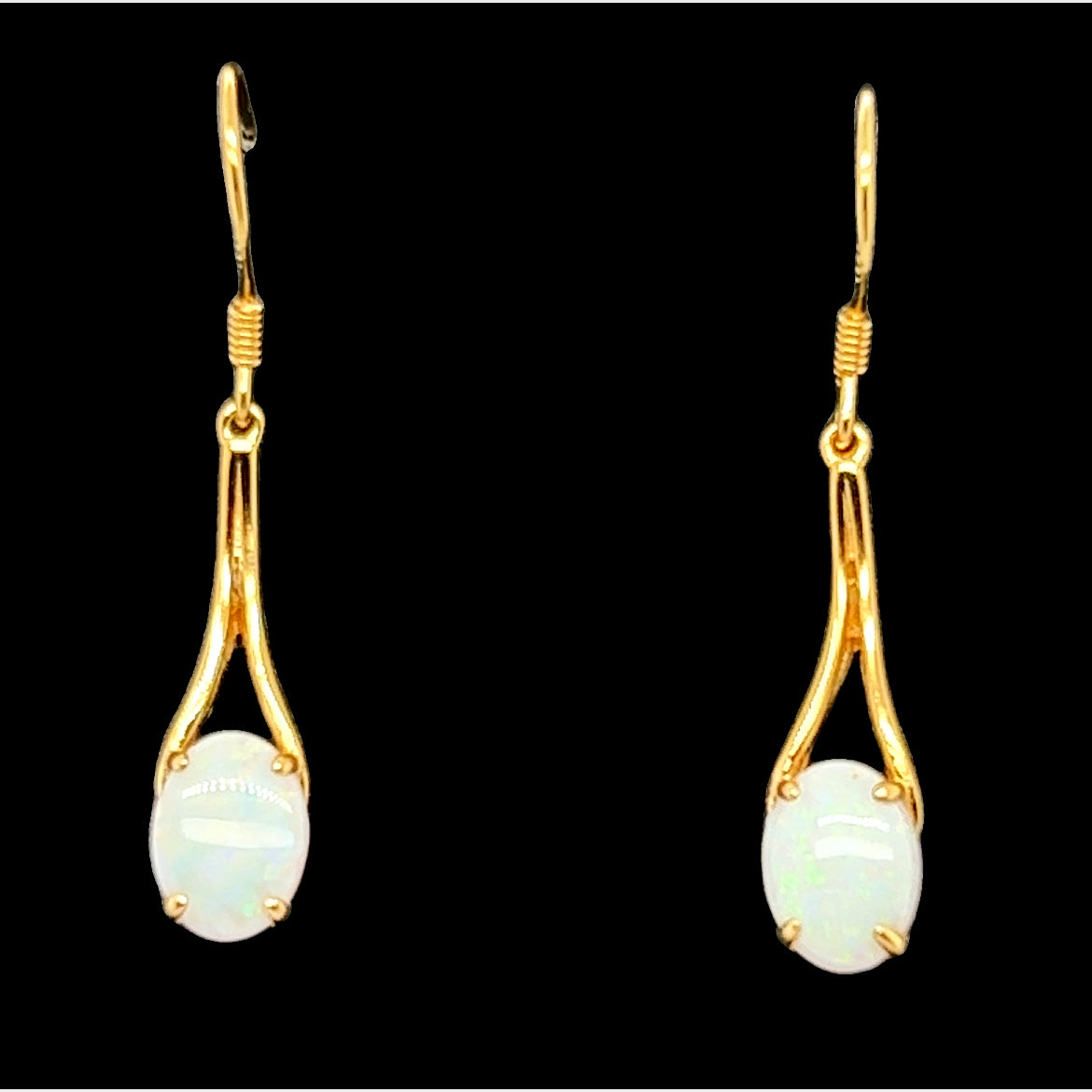 Gold plated sterling silver oval shaped solid opal earrings set with shepherd hook backings