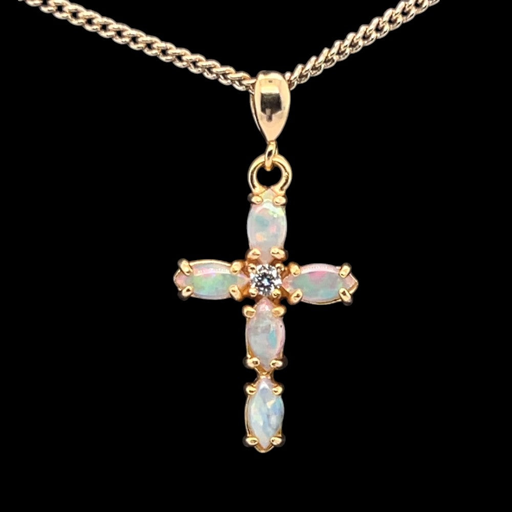 Unit price per-Gold Plated Sterling Silver Cross Opal Pendant -Cross is 21mm tall x 15mm wide -Set with 5 opal stones