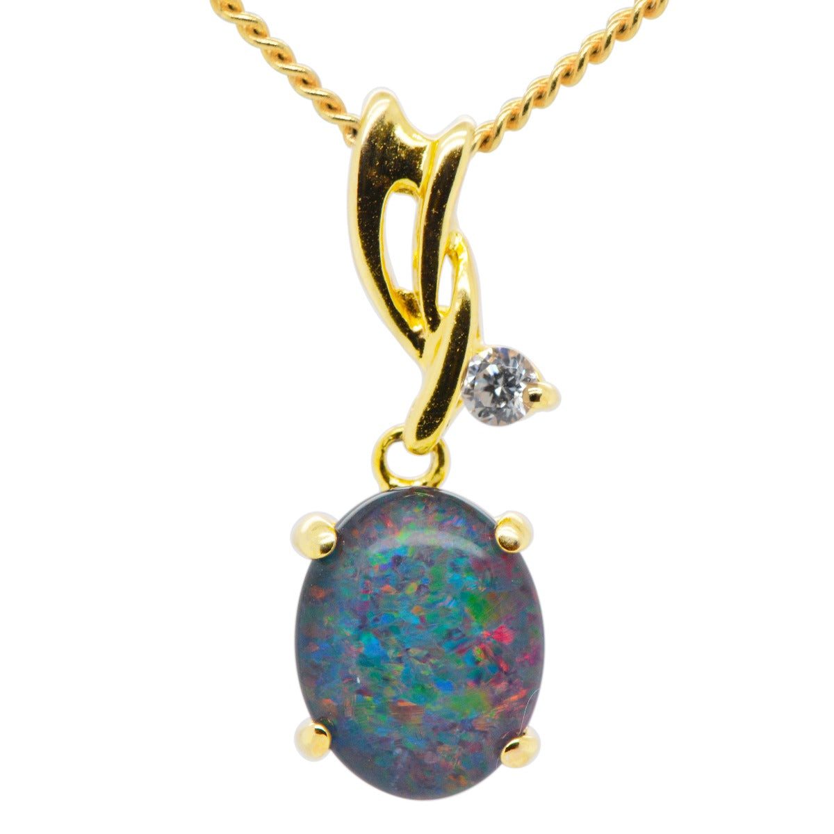 Unit price perSet with Gold Plated Sterling Silver, This Pendant is Fitted with a Triplet Opal Sized 8mm(w) x 10mm(h) in a Claw Setting With a Cubic Zirconia Crystal Accent. Despite this Triplet Opal Stone Exhibiting Flashes of Vibrant Fiery Red Play, Our Stock Varies in Colour so Please Contact us if you Require a specific Tone.