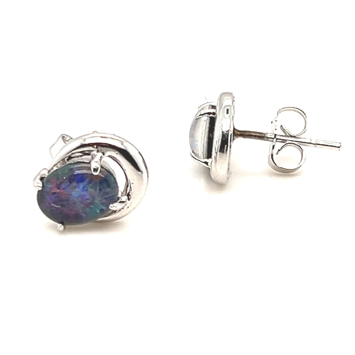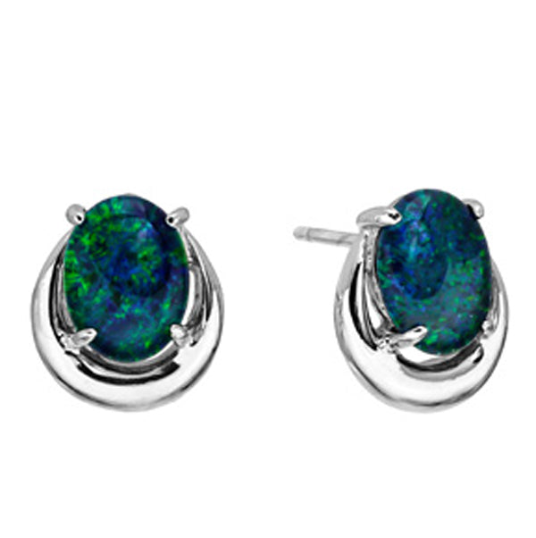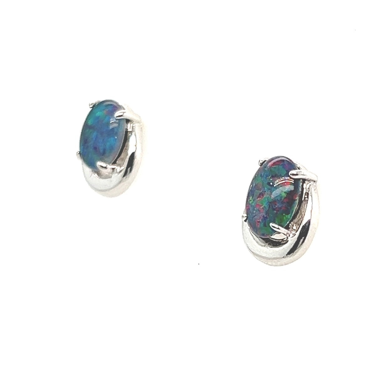 Horse Shoe Sterling Silver Triplet Opal Earrings (sste4a)