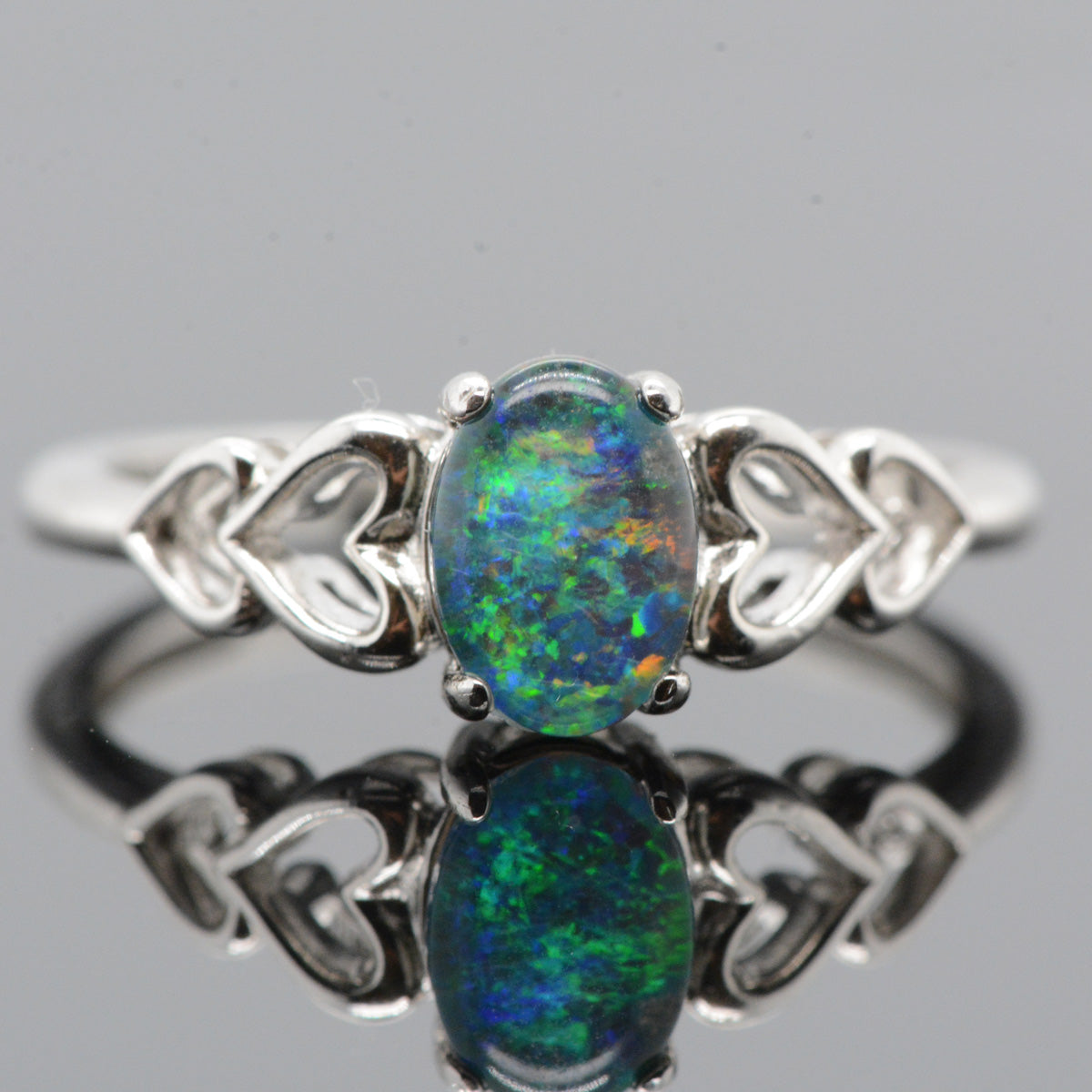 Ladies Sterling Silver Triplet Opal Heart Ring