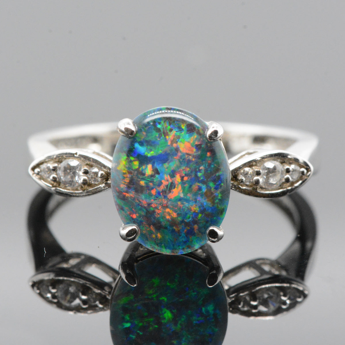 Unit price perLADIES STERLING SILVER TRIPLET OPAL RING SET WITH TWO CUT CRYSTALS,