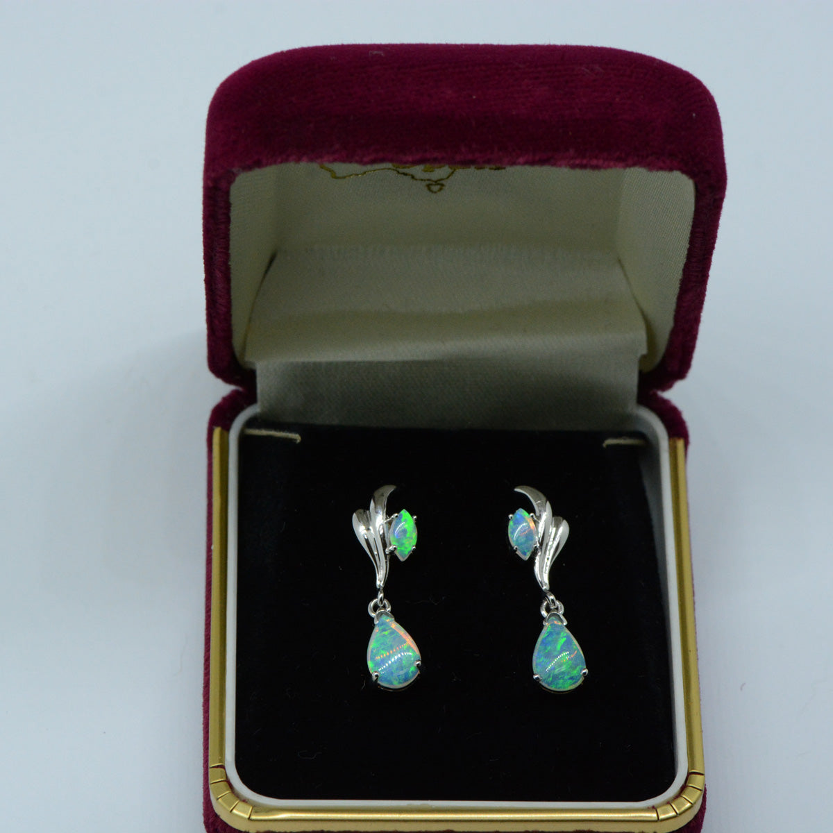 Unit price per14ct white gold solid opal earrings