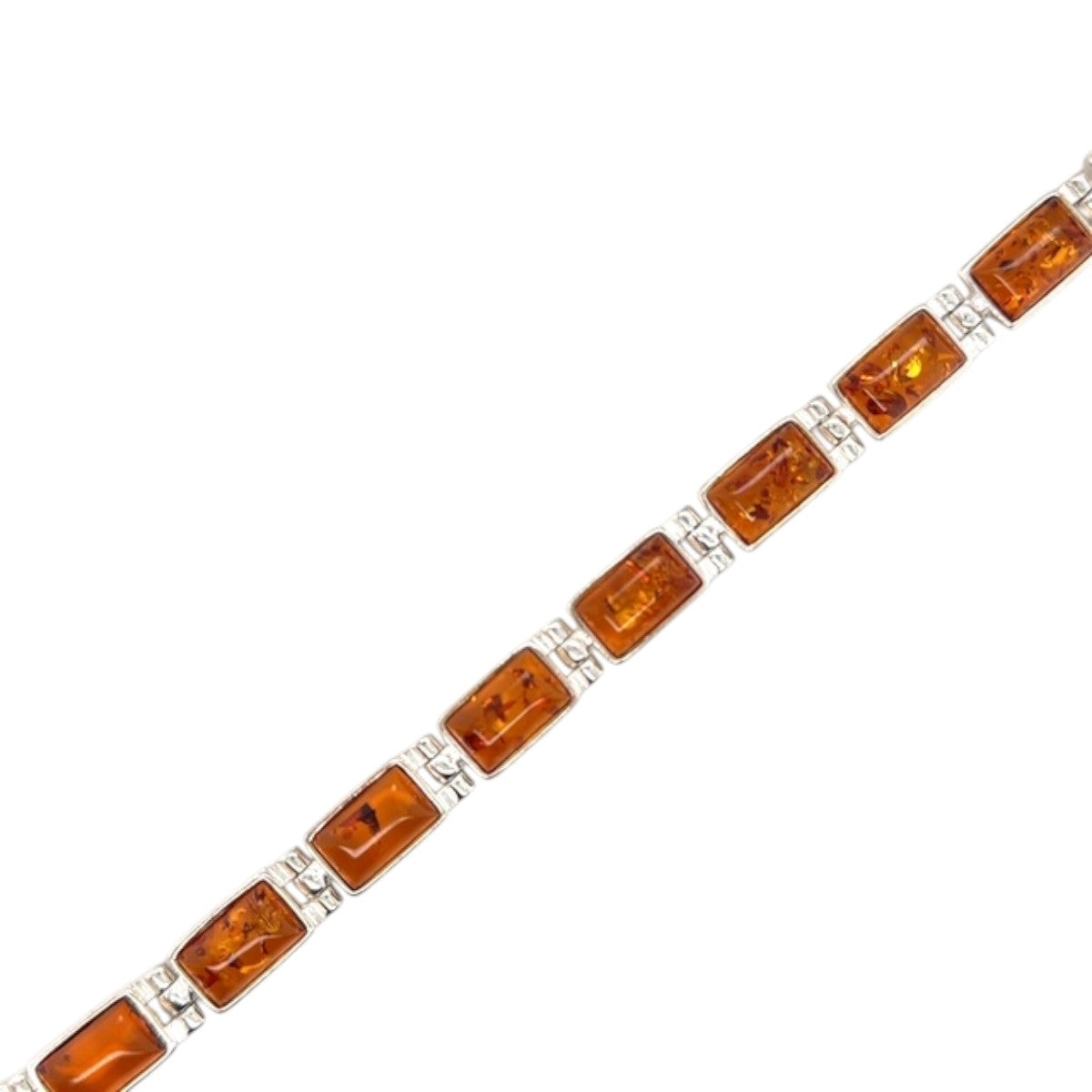 Sterling Silver amber bracelet set with 11 individual pieces of amber