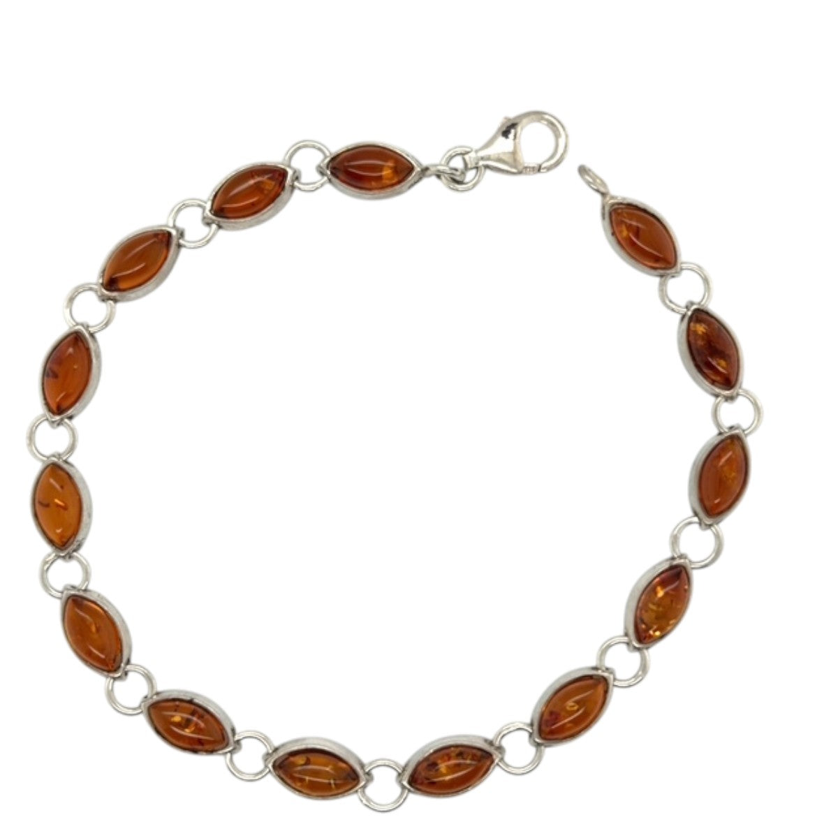 Sterling Silver amber bracelet set with 14 individual pieces of amber