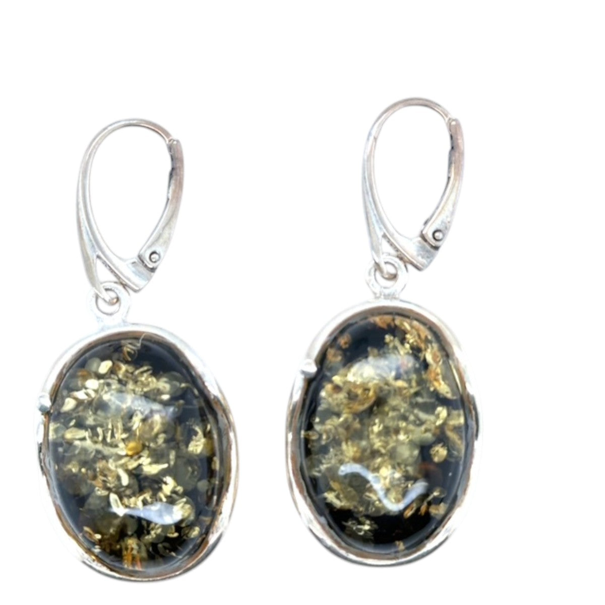 Crafted in a Sterling Silver Bezel Setting, This Piece is Set with an marquee Cognac Amber Gemstones 7mm(w) X 22mm(h) in Dimensions and uses a French Clip System. Our Amber Jewellery is Naturally Sourced from the Baltic Region of Eastern Europe.