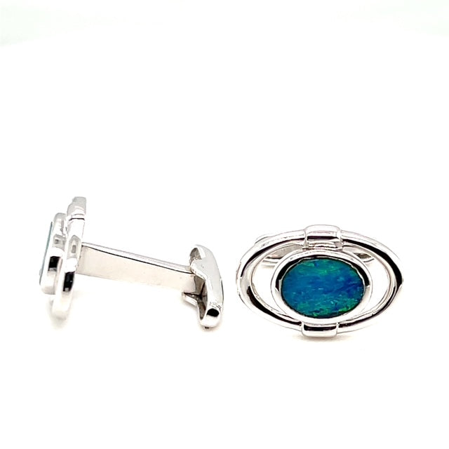 Unit price perSterling silver Australian doublet opal cufflinks
