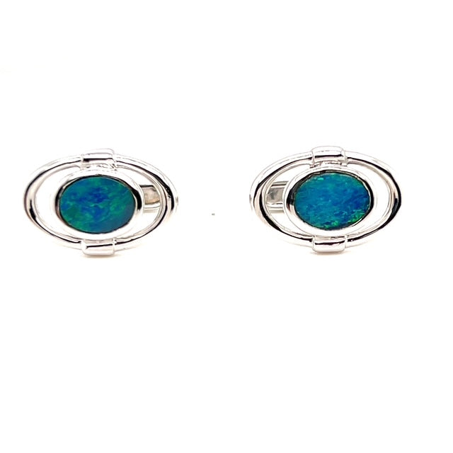 sterling silver doublet opal cufflinks (sscuff7)