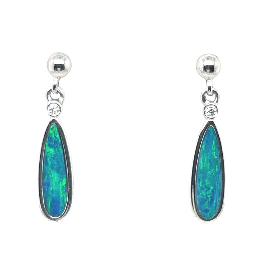 Unit price perSterling Silver Drop Doublet Opal Earring,
