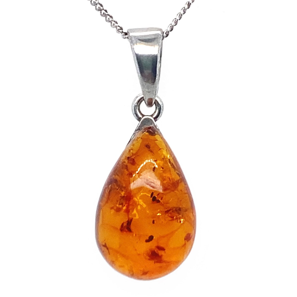 Set in Sterling Silver, this minimalistic yellow amber drop pendant is naturally sourced from the Baltic Region of Europe.