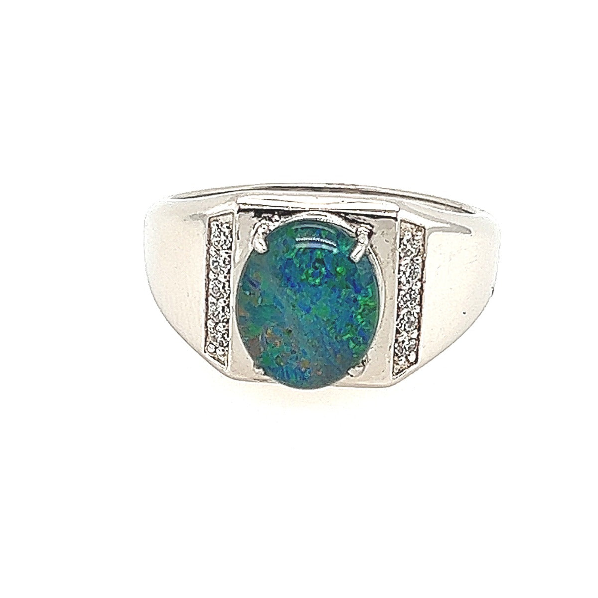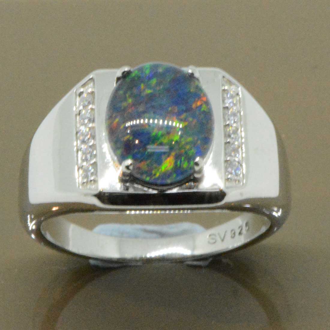 Sterling silver mens triplet opal ring