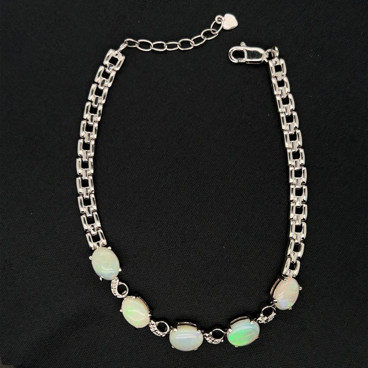 Unit price perSterling silver solid opal bracelet with 5 solid opals