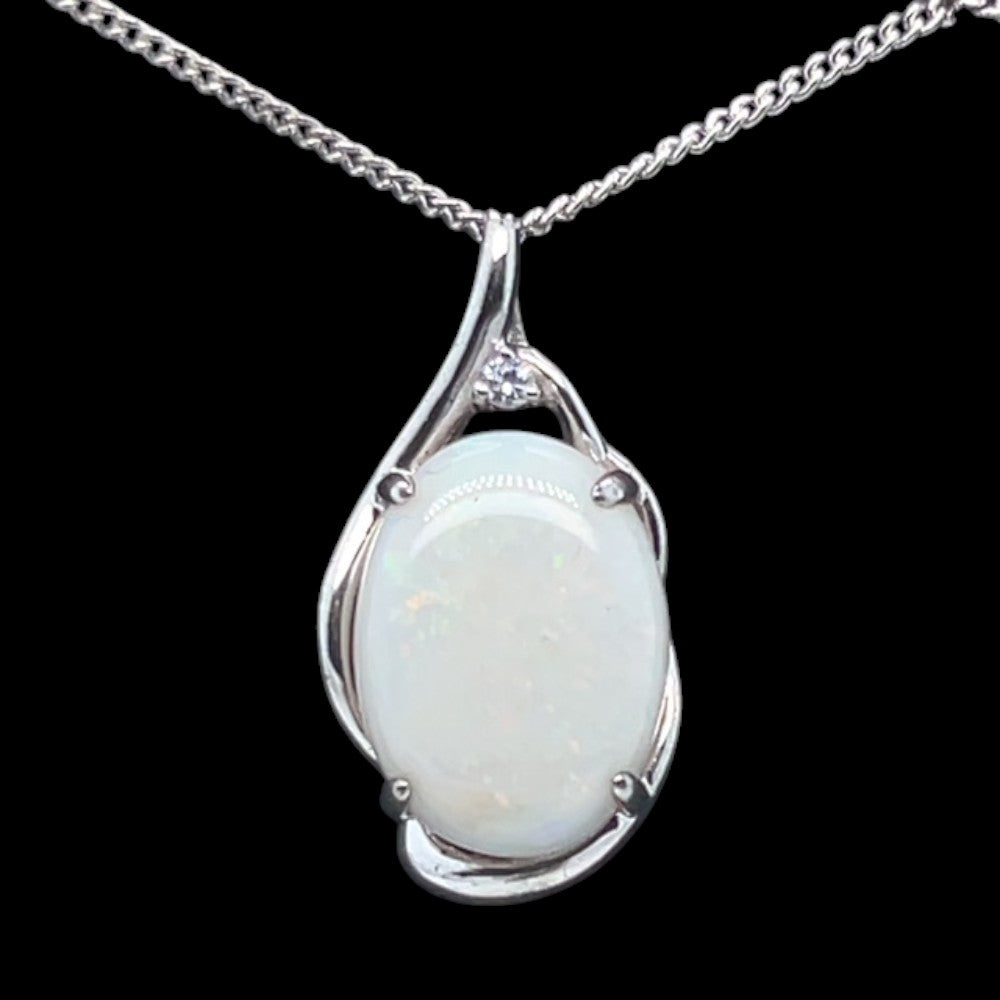 Unit price perSet with Sterling Silver, This Claw set Pendant is fitted with one beautiful oval shaped white Solid Opal 12mm(w) x 16mm(h) and a Single Cut Crystal. Included, Our Pendants Come Packaged with a silver plated chain in a Johnston Opals Display Box. If You Have Any Questions, Please Either Call us During Our Opening Hours, Or Email us Directly on the Contacts Page.