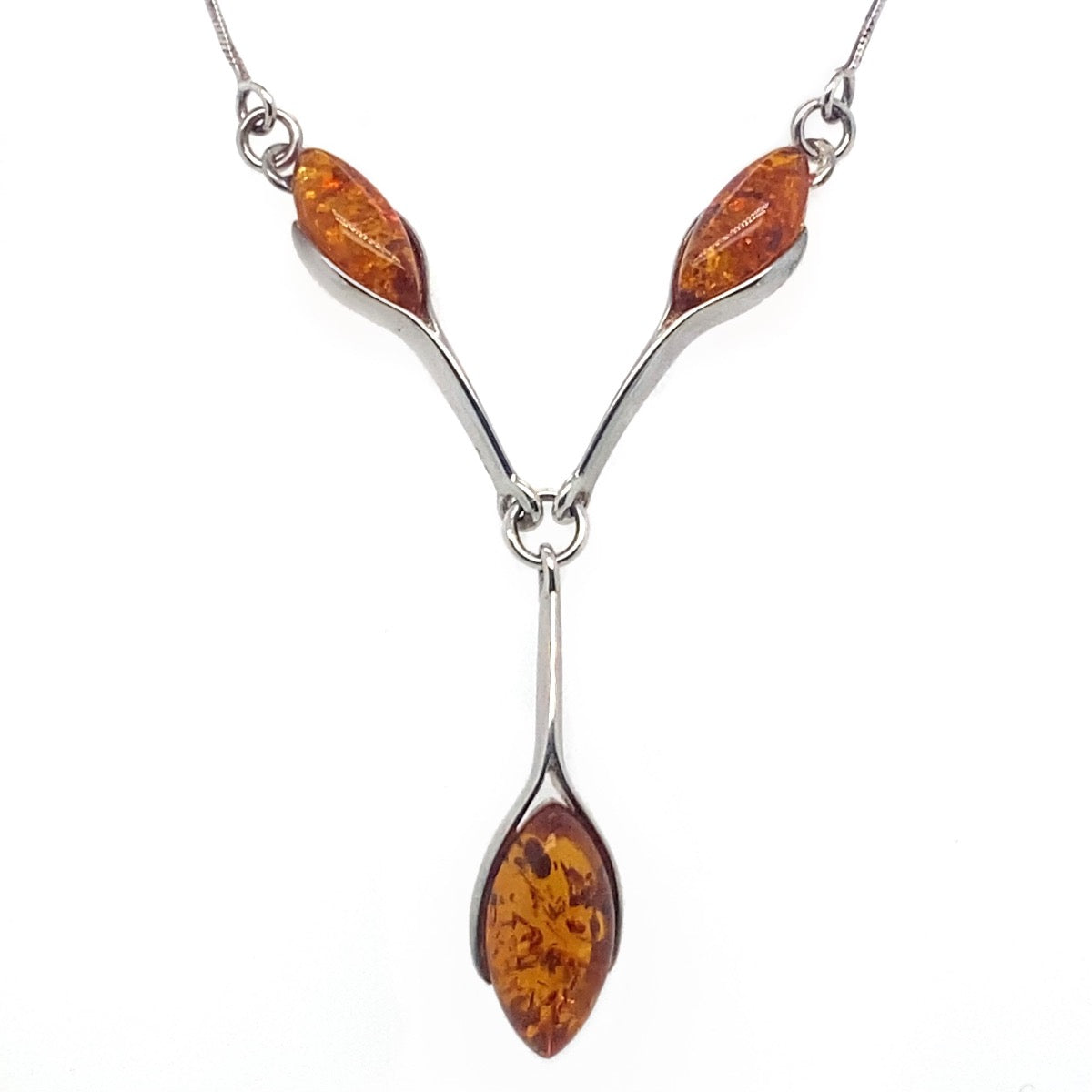 Three Stone Sterling Silver Amber Necklace (SAP2032)